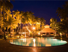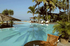 40,000 m2 großen Areal Gästezimmer und Bungalows in einer traumhaften Lage direkt am Strand. Das rustikale Ambiente wird noch unterstrichen durch Teakholz in der Lobby und den Räumen. Besonders stolz ist das Management auf den größten Swimmingpool der Region.