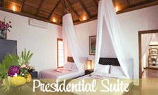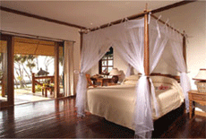 Zimmer: Die 31 großzügigen, wunderschön von einheimischem Handwerkern gestalteten Zimmer verfügen über Bad/Dusche/WC, Fön, Klimaanlage, Minibar, Moskitonetz, Sat-TV, Safe, Sitzgelegenheiten und Terrasse mit Meer- oder Gartenblick.