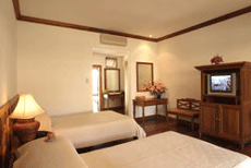 Ausstattung: Das erlesen ausgestattete Resort präsentiert sich im authentisch-birmanesischen Stil - edlem, polierten Teak, lichtem Bambusgeflecht und hellem Baumwolltuch. Das Resort bietet Ruhe und Entspannung inmitten seiner tropischen Gartenanlage mit einem schön angelegten, großen Pool. Liegen-, Sonnenschirm- und Handtuchservice, Poolbar, Bücherei, Boutique und ein Freiluft-Restaurant mit Bar und thailändischen sowie internationalen Gerichten - ein Schwerpunkt liegt natürlich auf fangfrischen Meeresschätzen - runden das Angebot ab.