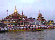 In den drei Wochen vor dem Oktobervollmond, Thadingyut, findet das Hauptfest des südlichen Shan-staates statt, das Paung-Daw-U-Festival auf dem Inle-See. In einer prächtig geschmückten Barke in Form des Karaweik-Vogels, begleitet von zahlreichen Booten, werden die hoch verehrten Buddhafiguren aus der Paung-Daw-U Pagode von einem Ort zum anderen gebracht. Der Karaweik ist die birmanische Version des Garuda-Vogels, der in der hinduistischen Mythologie als Reittier Vishnus eine wichtige Rolle spielt. Damit die Bewohner eines Dorfes die Buddhafiguren verehren können, bleiben sie über Nacht in einem Tempel, bevor es am nächsten Tag wieder auf Reisen geht. Es versteht sich in Birma fast von selbst, dass rund um den Dorftempel dann gleichzeitig Marktstimmung herrscht. Anlässlich des Festivals findet zudem ein Wettrennen der Eibeinruderer statt.