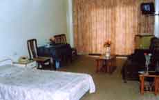 Die Zimmer sind zweckmäßig ausgestattet (je 1Tisch und 2 Stühle) und verfügen alle über Bad, Telefon und Klimaanlage, TV und Minibar. Das Hotel hat ein kleines Restaurant ohne Alkohollizenz. Alkohol kann mitgebracht werden.