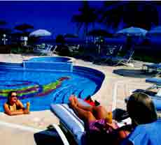 Im Strandclub, am feinen Sandstrand - direkt neben dem Hyatt Hotel gelegen - befinden sich ein Restaurant und ein Swimmingpool.